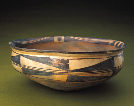 彩陶是指在打磨光滑的橙红色陶坯上,以天然的矿物质颜料进行描绘,用赭石和氧化锰作呈色元素,然后入窑烧制,烧制后在橙红色的胎地上呈现出赭红、黑、白、诸种颜色的美丽图案,形成纹样与器物造型高度统一,达到装饰美化效果的陶器。