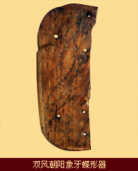 出土众多的工艺品中,有彩绘、刻划、捏塑、编结等。制陶中信手的捏塑,写实性强,手法夸张,富有浓郁的生活气息。如小狗匐身守门,游鱼昂首腾跃等等,陶盆外壁上刻划的一株株对称的稻穗纹,粗壮有力,极富生气,表现出河姆渡人祈求丰收的愿望。涂有涂料的水筒、木碗,是我国最早的漆器,色彩柔和。在骨匕上刻有对称的双鸟,画面舒展,栩栩如生。出土的近20种象牙雕刻,也各具特色。这集中地反映了先民们朴实的精神面貌和丰富的艺术想象。