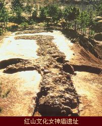 红山文化年代为公元前4000~公元前3000年,它以辽河流域中辽河支流西拉沐沦河、老哈河、大凌河为中心,分布面积达20万平方公里,延续时间达两千年之久。红山文化的社会形态初期处于母系氏族社会的全盛时期,主要社会结构是以女性血缘群体为纽带的部落集团,晚期逐渐向父系氏族社会过渡。经济形态以农业为主,兼以牧、渔、猎并存。它的遗存以独具特征的彩陶与之字型纹陶器共存、且兼有细石器的新石器时代文化。