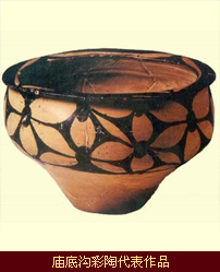 陶器的制作基本上是泥条盘筑,也有用手捏制的。颜色主要是红色,比较典型的陶器有卷缘曲腹盆、曲腹钵、敛口瓮、夹砂罐、小口尖底瓶和陶灶等。彩陶纹饰主要有花瓣纹、豆夹纹、网纹、窄带纹等。