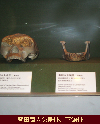 蓝田人头骨有许多明显的原始性状。眉脊硕大粗壮,在眼眶上方几乎形成一条直的横嵴,两侧端明显向外侧延展。眉脊与额鳞之间的部位明显缩窄。额骨非常低平。头肌骨壁极厚,同北京人、爪哇人头骨相比较,蓝田人头骨各部分的厚度基本上都位于它们的变异范围的上限,有些甚至超过最大数值。
