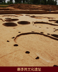 裴李岗文化是中国新石器时代中期的考古学文化,也是中华民族文明起步文化。20世纪50年代后,在新郑县新村乡的裴李岗村一带,陆续出土一些石斧、石铲和石磨盘等。1977年至1982年春,考古工作者先后对新郑县的裴李岗、唐户和沙窝李遗址进行发掘,其中对裴李岗和沙窝李进行了五次较大规模发掘,发掘面积3550多平方米,清理墓葬146座、灰坑44个、陶窑1座,磨制石器212件、陶器299件。其他还有房基、窖穴、骨器和动植物残存等。考古学家将此种文化命名为裴李岗文化,其年代约在8000年前左右。