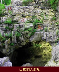 山顶洞遗址位于北京市周口店龙骨山北京人遗址顶部,山顶洞分为洞口、上室、下室和下窨(xūn)4部分。洞口向北,高约4米,下宽约5米。上室在洞穴的东半部,南北宽约8米,东西长约14米。在地面的中间发现一堆灰烬,底部的石钟乳层面和洞壁的一部分被烧炙,说明上室是山顶洞人居住的地方。在上室文化层中发现有婴儿头骨碎片、骨针、装饰品和少量石器。下室在洞穴的西半部稍低处,深约8米。发现有3具完整的人头骨和一些躯干骨,人骨周围散布有赤铁矿的粉末及一些随葬品,说明下室是葬地。下窨在下室深处,是一条南北长3米、东西宽约1米的裂隙。发现了许多完整的动物骨架,推测它们是在人类入居以前,偶然坠入这个天然“陷阱”之中的。