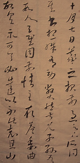 草书有章草、今草、狂草之分。章草笔划省变有章法可循,代表作如三国吴皇象《急就章》的松江本。今草不拘章法,笔势流畅,代表作如晋代王羲之《初月》、《得示》等帖。狂草出现于唐代,以张旭、怀素为代表,笔势狂放不羁,成为完全脱离实用的艺术创作,狂草如唐代张旭《肚痛》等帖和怀素《自叙帖》,都是现存的珍品。