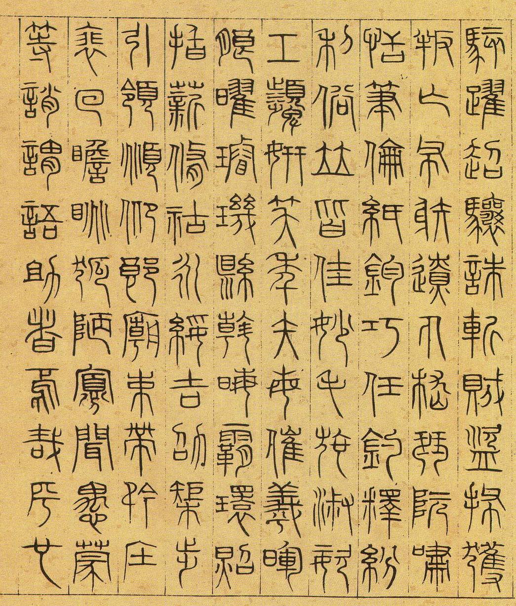 、金文、籀文、六国文字,它们保存着古代象形文字的明显特点。小篆也称“秦篆”,是秦国的通用文字,大篆的简化字体,其特点是形体匀逼齐整、字体较籀文容易书写。在汉文字发展史上,它是大篆由隶、楷之间的过渡。