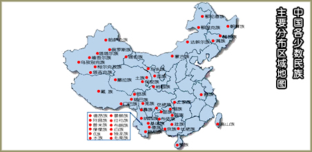 第二,分布范围广,但主要集中于西部及边疆地区。2000年人口普查数据表明,各民族平均分布在30个省区,有29个民族分布在全国所有的省区中。全国拥有56个民族的省区有11个,占全国31个省区的35.5%。尽管少数民族分布范围很广,但其人口仍主要集中在西部及边疆地区。2000年人口普查显示,广西、云南、贵州、新疆4个省区的少数民族人口之和占全国少数民族人口的一半以上,再加上辽宁、湖南、内蒙古、四川、河北、湖北、西藏、吉林、青海、甘肃、重庆和宁夏,以上16个省区的少数民族人口占全国少数民族人口的91.32%。我国陆地边境线全长2万多公里,绝大部分是少数民族地区。 |