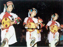 二月十三日“逛场”的时刻到了,傍晚时分,熙熙攘攘的人群涌向场地。首先由主人中德高望重的老者高擎一杆花旗,沿着场地步行环绕三圈,然后将花旗插在场地中心;接着有三个壮士各骑骏马,手持铳枪,绕着更大的范围疾驰三圈。这个圈地、比长者步行划定的圈地大得多,是歌舞活动的场所,观光群众都可以随意出进,无拘无束;而长者划定的花旗为中心的小圈地,则是未婚男女谈情说爱的范围,“闲人免进”的禁地。地区划定以后,先由伴同未婚儿女的老母打开包袱,把各种鲜艳服装和珠宝首饰全部摊开,供群众观赏,并相互比较,谓之“亮家底”,然后给女儿穿戴起来,浑身珠光宝气,引得人人注目,啧啧赞羡,立刻便有未婚男子吹着芦笙,踏着舞步,迎了上来。姑娘不管中不中意,按照礼节,必须随着男子绕正中花旗三迎,依芦笙节奏,报以歌声,双双对对在月下相互打量,仔细品察,姑娘如不合意,便在歌词里表示拒绝。男方会意,只得舍此就彼,另寻所好,姑娘回到母亲身边,等待又一个男子前来求爱。选择的主动权大都操于女方。经过三番四次的歌舞追逐,双方才情投意合,才各自回到老母身边,汇报情况,进餐休息,等候进一步与意中人“深谈”时过午夜,执事人一声号令,闲杂人等纷纷退出小圈禁区以外,未婚男女双双进入小圈,男方撑开雨伞,与女郎并坐伞下,开始“深谈”。禁区周围有人负守护之责,不许外人撞入偷听。此时夜色朦陇,万籁俱寂,唯闻伞下喁喁情话之声“深谈”通宵达旦,月落日出,始解除禁令,各自散去,于是双方亲属会见,议定婚约,仪式顺告完成。“逛场”三天的仪式相同,唯划场地节只进一次。这一习俗历史悠久,具有浓厚的民族色彩。 |