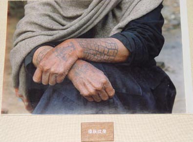 在唐宋以后的一些古籍中,把文身的蛮夷分为“绣脚蛮”、“绣面蛮”和“雕题蛮”数种。明时《百夷传》云:“不黥足者,则众皆嗤之,曰妇人也,非百夷种类也”。说明其时已进入父系社会,文身既示男女之别,又别民族之异。在文身图案中的傣文、佛碣是佛教传入和有了文字以后的发展。傣族传说是佛祖为了使小和尚专心听经、以修正果而画上的花纹。这也许是为了展示男人在佛寺接受了教育,已由“生人”变成了有知识的“熟人”吧!至于一些学者和文身者所说的,文身是为了赢得女人的爱情,也许不无道理。