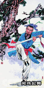 刘琨年青的时候,有一个要好的朋友叫祖逖。在西晋初期,他们一起在司州(治所在今洛阳东北)做主簿,晚上,两人睡在一张床上,谈论起国家大事来,常常谈到深更半夜。