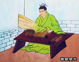 汉朝时候,有个叫匡衡的人,非常喜欢读书。但是因为家境贫寒,买不起蜡烛,夜间无法照明读书。