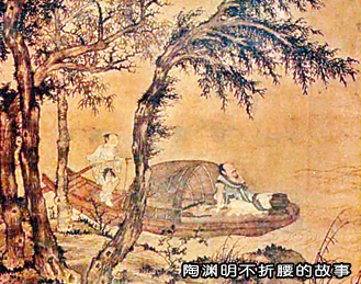 在这个动荡不安的年代里,在柴桑地方,有一个出名的诗人,名叫陶潜,又叫陶渊明,因为看不惯当时政治腐败,在家乡隐居。陶渊明的曾祖父是东晋名将陶侃,虽然做过大官,但不是士族大地主,到了陶渊明一代,家境已经很贫寒了。陶渊明从小喜欢读书,不想求官,家里穷得常常揭不开锅,但他还是照样读书做诗,自得其乐。他的家门前有五株柳树,他给自己起个别号,叫五柳先生。
