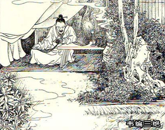 孔丘花了很大的精力,把《易》全部读了一遍,基本上了解它的内容。不久又读第二遍,掌握了它的基本要点。接着,他又读第三遍,对其中的精神、实质有了透彻的理解。在这以后,为了深入研究这部书,又为了给弟子讲解,他不知翻阅了多少遍。这样读来读去,把串联竹简的牛皮带子也给磨断了几次,不得不多次换上新的再使用。