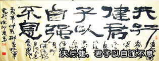 自强不息。语出《易经》“天行健,君子以自强不息。”其意是,天上的日月星辰是不分昼夜,永恒运动,所以“天”是“刚健”的,人应效法天,积极进取,永不停息。自强不息,是中华民族崇高的民族道德精神,它激励中华儿女一代又一代的拼搏奋斗,改革进取。自从开天辟地以来,我们勤劳勇敢的祖先,披荆斩棘,铺路搭桥,谱写了一曲曲悲壮动人的颂歌。黄帝教民养蚕,制作舟车,炎帝斫木为耒耜,课民以农桑;尧帝设官定历,率民战胜旱灾;大禹为了治水,13年走遍9个大州,疏通9个湖,开凿9座山,“三过家门而不入”,率百姓终于治服了水患。商周以来,涌现出许多奋发有为、励志图强、自强不息的思想家、政治家、军事家、科学家、教育家及无数能工巧匠。正是这种自强不息的精神,使中华民族能以造纸术、指南针、火药和印刷术四大发明,为世界文明的进步作出重大的贡献。也正是这种自强不息的精神,激励着历代众多的杰出人物,开拓进取,奋斗不息,为国家、民族兴旺发展贡献出自己的聪明才智,使中华民族屹立于世界民族之林。