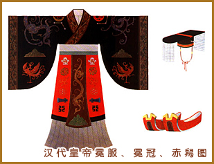 附带说说襜褕和衫。(释名》:“[衤+属],属也,衣、裳上下相连属也。荆州谓禅衣曰布[礻+属],亦曰襜褕,言其檐褕宏裕也。”《史记·魏其武安侯列传》:“元朔三年,武安侯[田恬]坐衣檐褕人宫,不敬,[国除。]”《索隐》:“檐褕谓非正朝服,若妇人服也。”《汉书·外戚恩泽表》记载此事,颜师古注云:“襜褕,直裾禅衣也。”古书旧注一说襜褕为短衣,依据上述三家之说,恐怕还是衣、裳相连博大舒适的禅衣,为平日家居所穿。(关于“裾”,详下。)